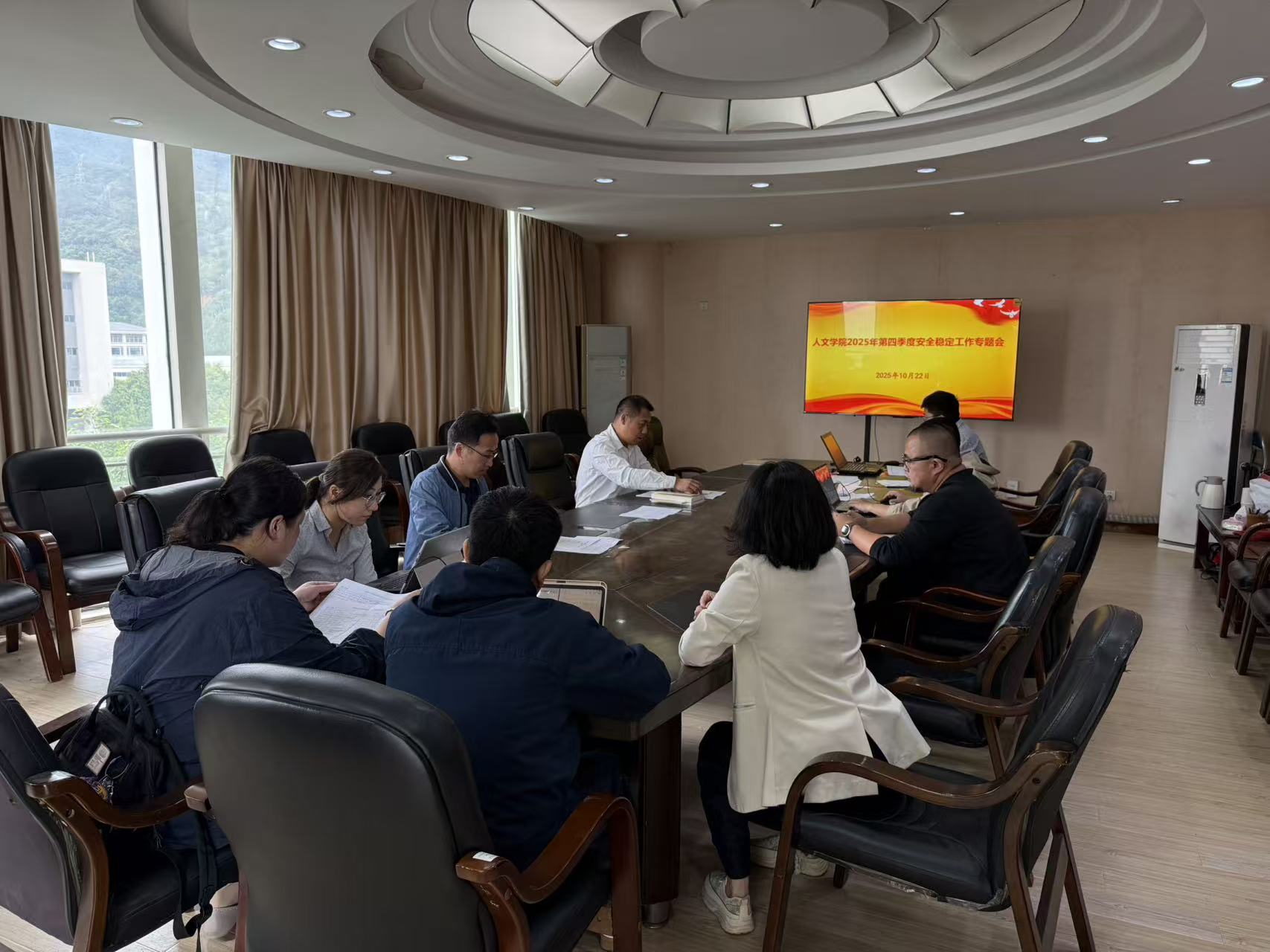 10月22日上午,人文学院召开安全稳定工作专题会,深入学习贯彻落实上级关于校园安全稳定的决策部署。会议由