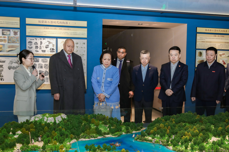 交流期间,代表团在工作人员的细致讲解下,通过文物展品、学术成果展板、多媒体演示等丰富形式,系统了解南岛语族研究领域的多学科成果,深入感知汤加王国与福建之间跨越历史的深厚文化联结。双方共同追溯了太平洋两岸共通的文化基因,进一步明确福建沿海作为南岛语族“文化原乡”的核心地位,以及其与太平洋岛国之间密不可分的文化纽带。代表团对我校在南岛语族文化研究与交流中的引领作用给予高度评价,并希望通过此次访问共同推动两国在南岛语族文化领域的互动迈向纵深。