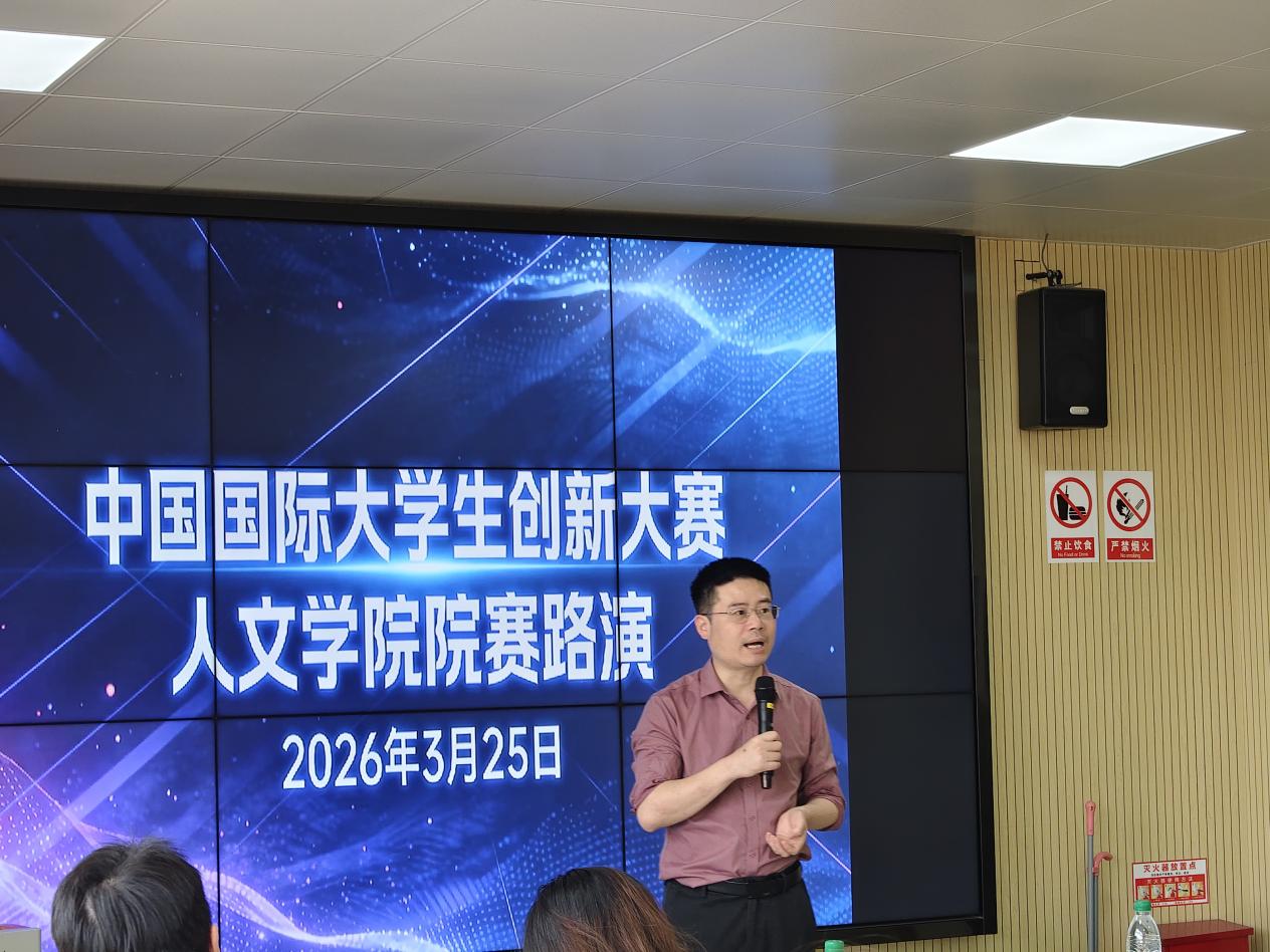 325日,人文学院举办大学生创新大赛(2026)院赛路演。本次路演邀请了我校三创学院郭清老师、陈韬婕老师担任专业评委,人文学院党委副书记林俊荣出席观赛,学院部分师生到场观摩学习。